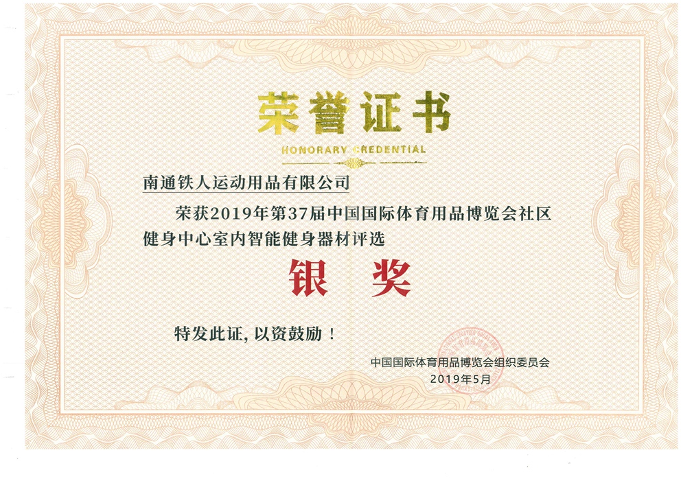 | 2019 | 2019體博會室內(nèi)智能健身器材銀獎 | 中國國際體育用品博覽會組委會 |