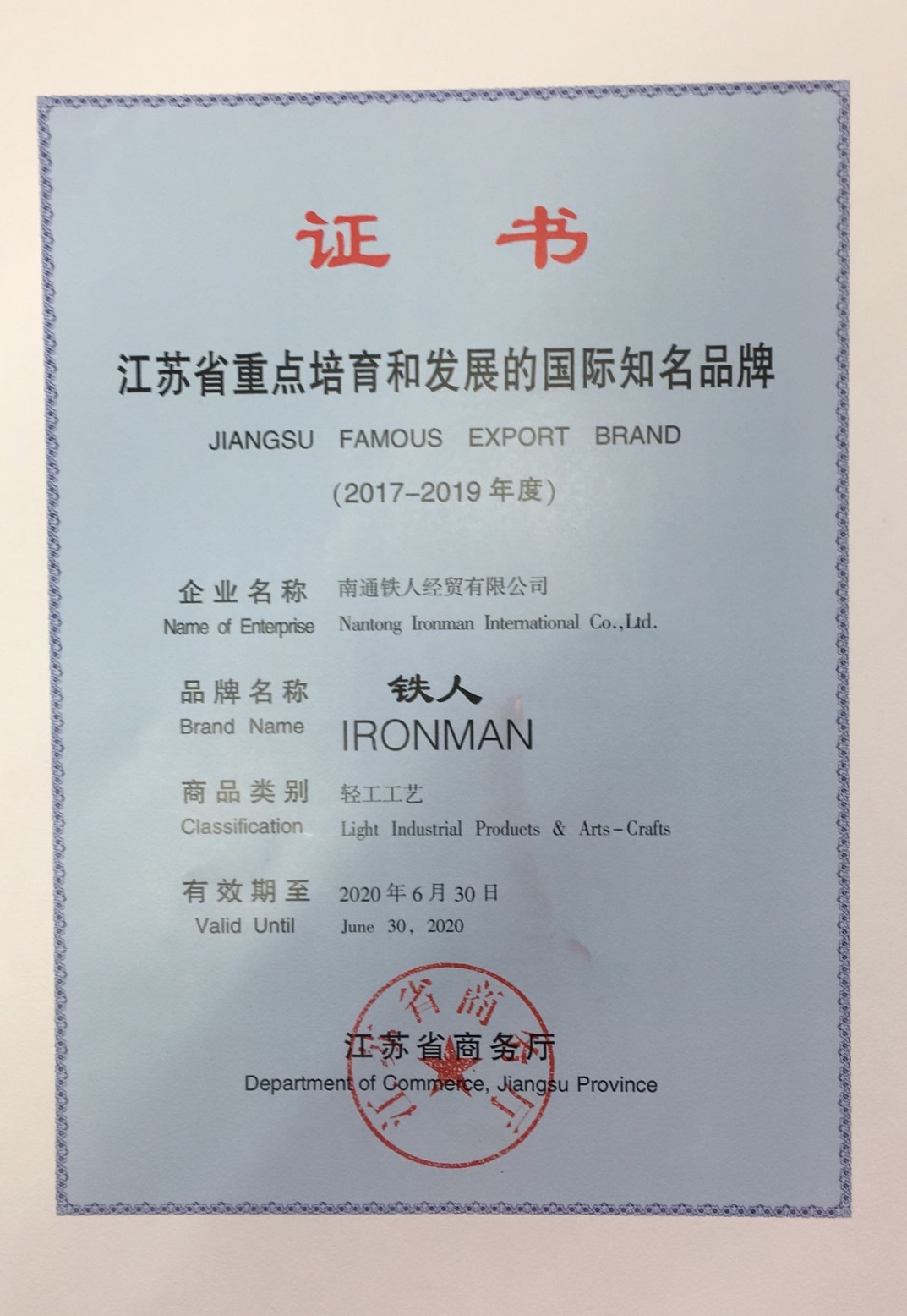 | 2018 | 江蘇省重點(diǎn)培育和發(fā)展的國際知名品牌 | 江蘇省商務(wù)廳 |